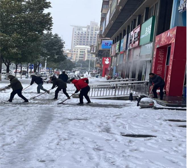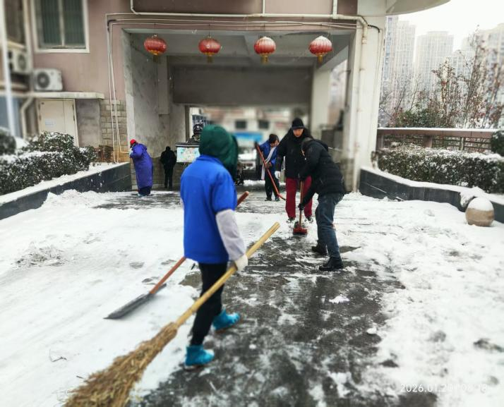 永安花苑小区党员志愿者铲雪除冰行动