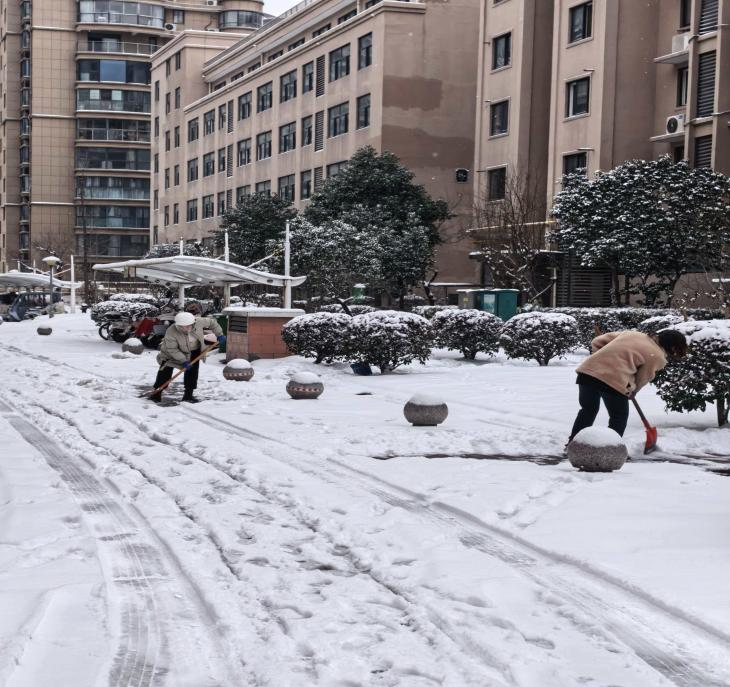 关键时刻,浙东置业集团党支部迅速响应上级党组织号召,联合永辉物业党支部、浙东商贸城小个专支部,以“见雪立动、人到冰除”为原则,启动铲雪除冰应急行动。在党支部书记徐翔的带领下,党员同志们率先垂范,分片区、定责任,手持铁锹、扫帚奔赴各重点路段,弯腰铲雪、奋力清扫,忙碌的身影在冰雪中形成一道亮丽的风景线。