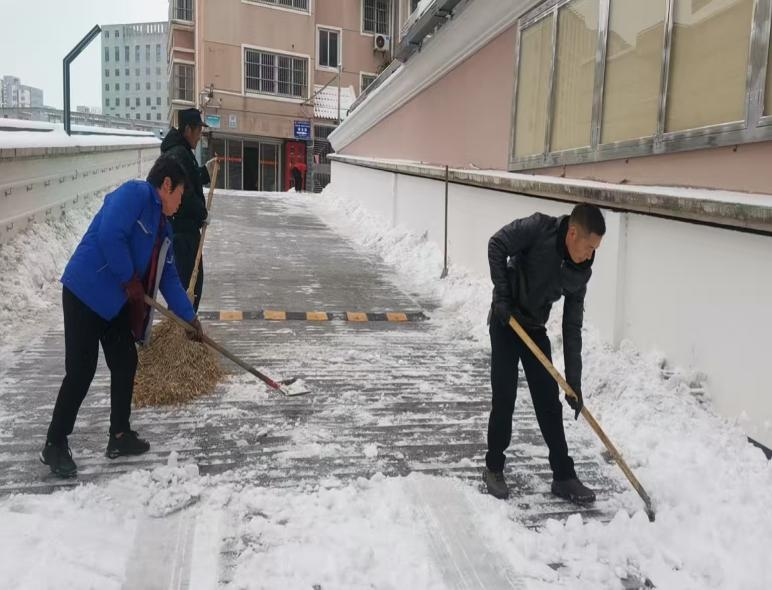 东星苑和玲珑苑小区党员志愿者铲雪除冰行动