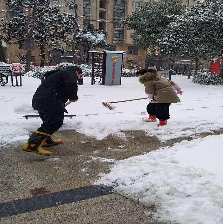 永安花苑小区党员志愿者铲雪除冰行动